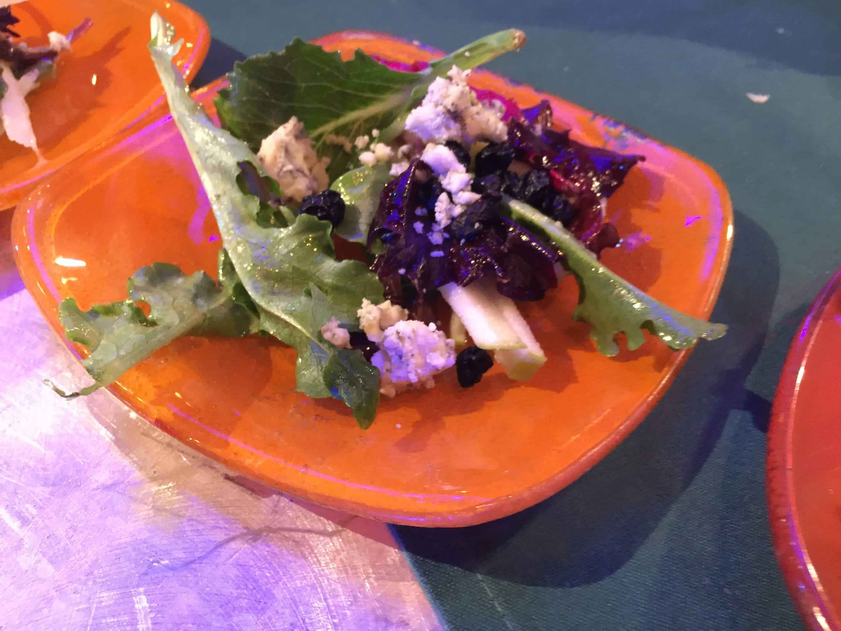 Land-harvested Field Greens with Apples, Dried Blueberries, Stilton Cheese, and Apple Cider Vinaigrette